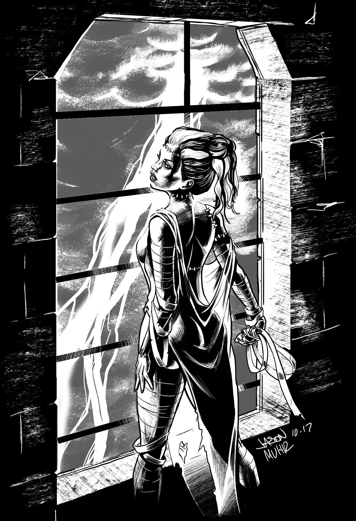 Daily Sketch: Bride of Frankenstein Happy Halloween View fullsize Tuesday 10.10.17 Posted by Jason Muhr